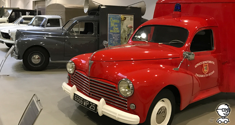 Der unglaublich vielseitige Peugeot 403, hier als Kastenwagen der Feuerwehr und (hinten) als Werbefahrzeug.